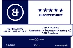 Zum wiederholten Mal wurde die SBU Premium der Hannoversche im Gesamtrating als ausgezeichnet bewertet.